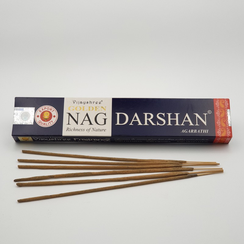 - Varillas de incienso Golden Nag Darshan, se presenta en cajas de 15 gr. con unas 20 unidades aproximadamente.