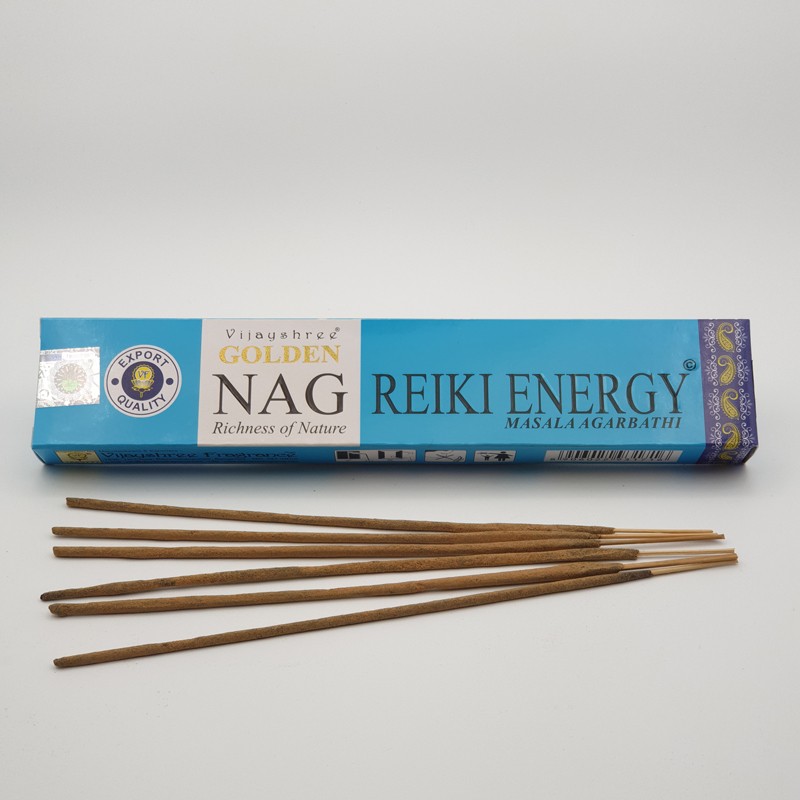 - Varillas de incienso Golden Nag Reiki Energy, se presenta en cajas de 15 gr. con unas 20 unidades aproximadamente.