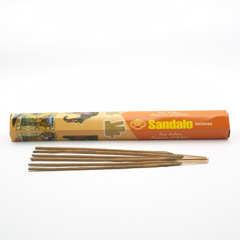 - Varillas de incienso de Sac aroma Sándalo, se presenta en cajas de 15 gr. con unas 20 unidades aproximadamente.