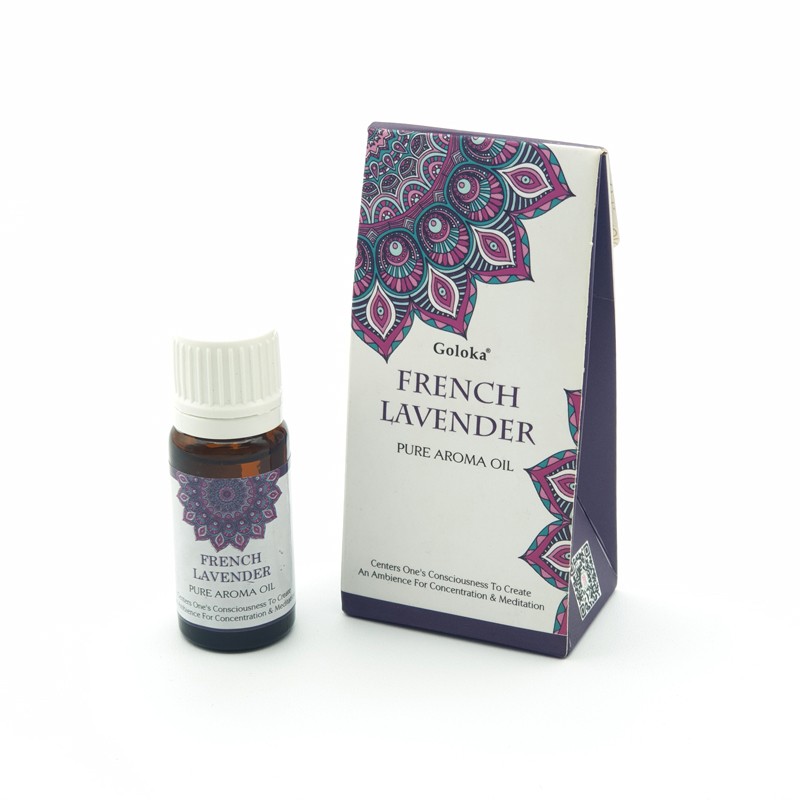 - Aceite aromático de Goloka aroma Lavanda, se presenta en bote de 10 ml.