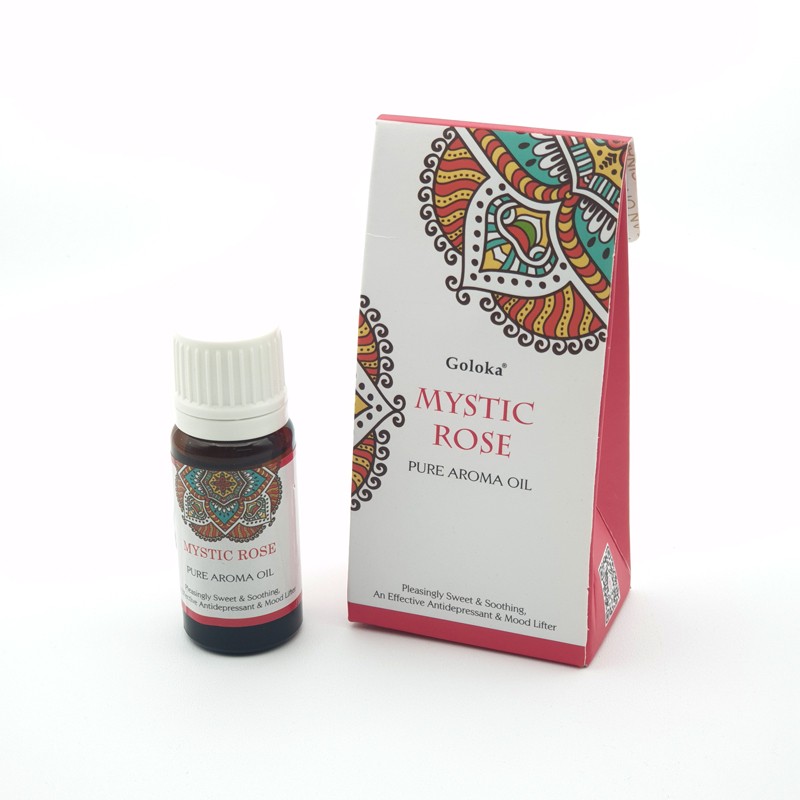 - Aceite aromático de Goloka aroma Rosa Mística, se presenta en bote de 10 ml.