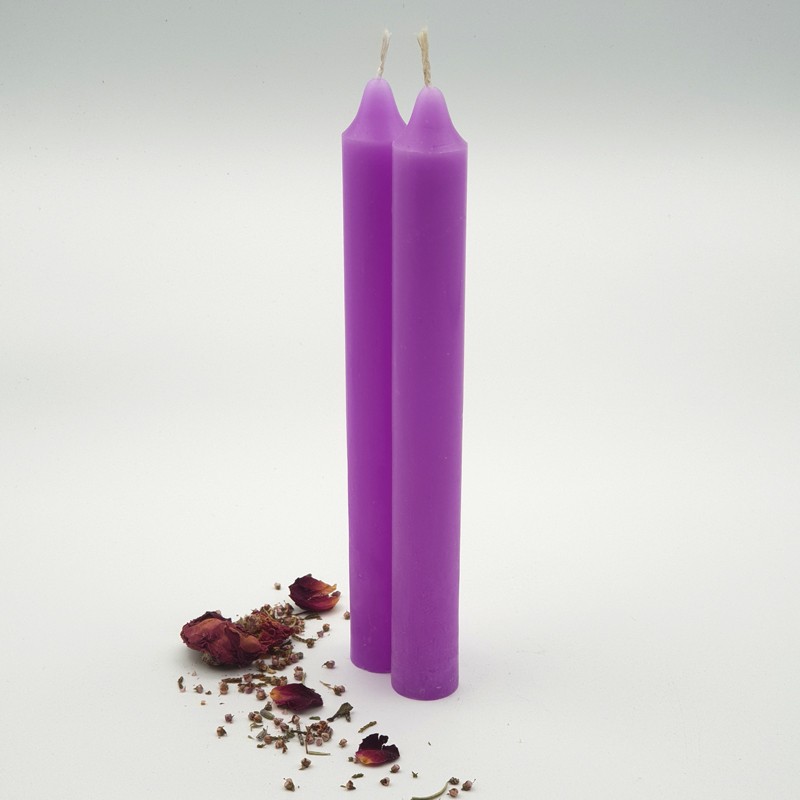 - Vela de bujía color morado de 15 cm.